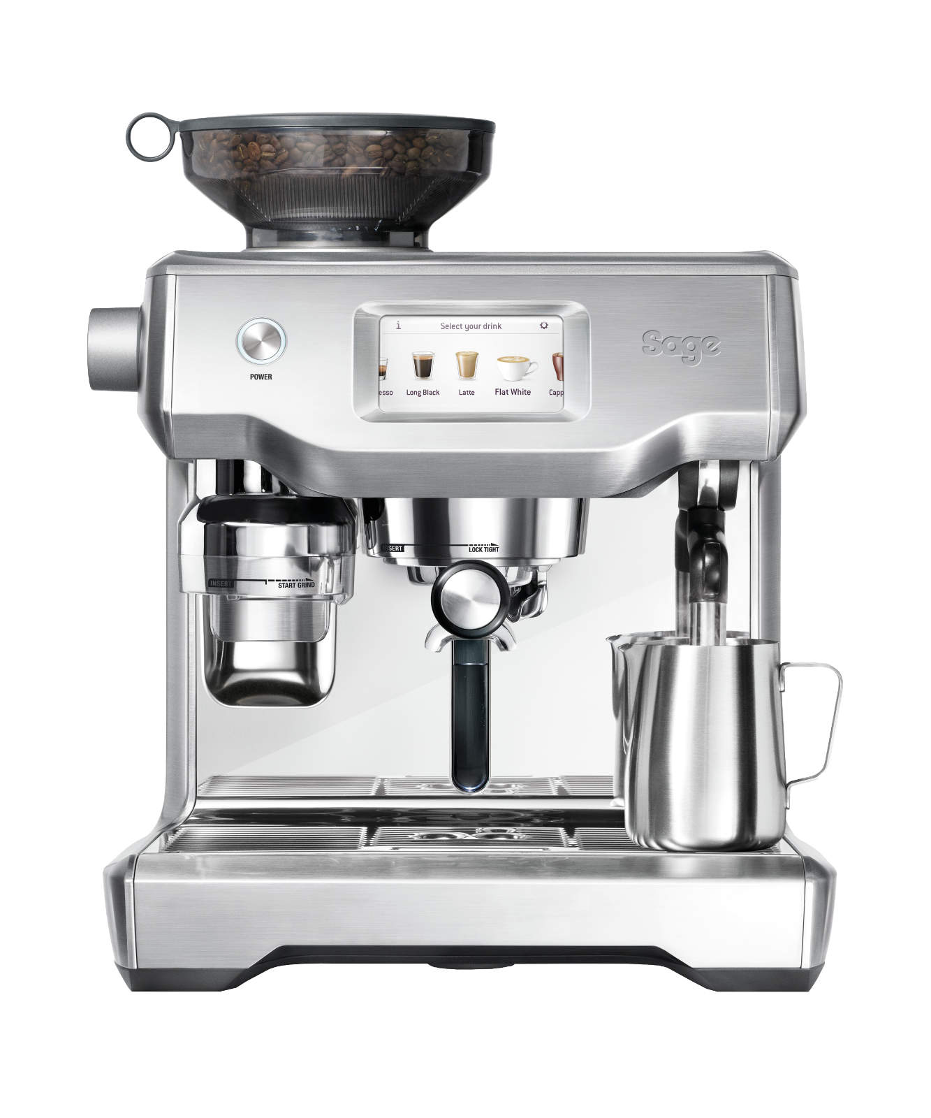 Bei „the Oracle Touch“ zeigt sich die außergewöhnliche Qualität schon am klassisch gestalteten Edelstahlgehäuse. Und: Auch der Dualboiler wie das Kegelmahlwerk im Inneren der Maschine sind aus Edelstahl. Vier Schlüsselelemente sorgen im Handumdrehen für Spezialitäten wie aus dem Lieblingscafé: Dosierung, Temperatur, Druck und Dampf.