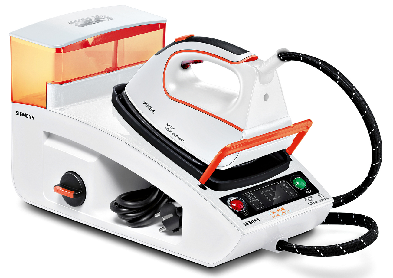 Die Siemens Dampfstation SL 45 extremePower limitedEdition hat eine Leistung von 3.100 Watt und 6 bar Dampfdruck zum Glätten mehrere Lagen Wäsche auf einmal. Der XTRM Tiefendampf mit pulseSteam liefert drei intensive Dampfstöße mit bis zu 250 Gramm.