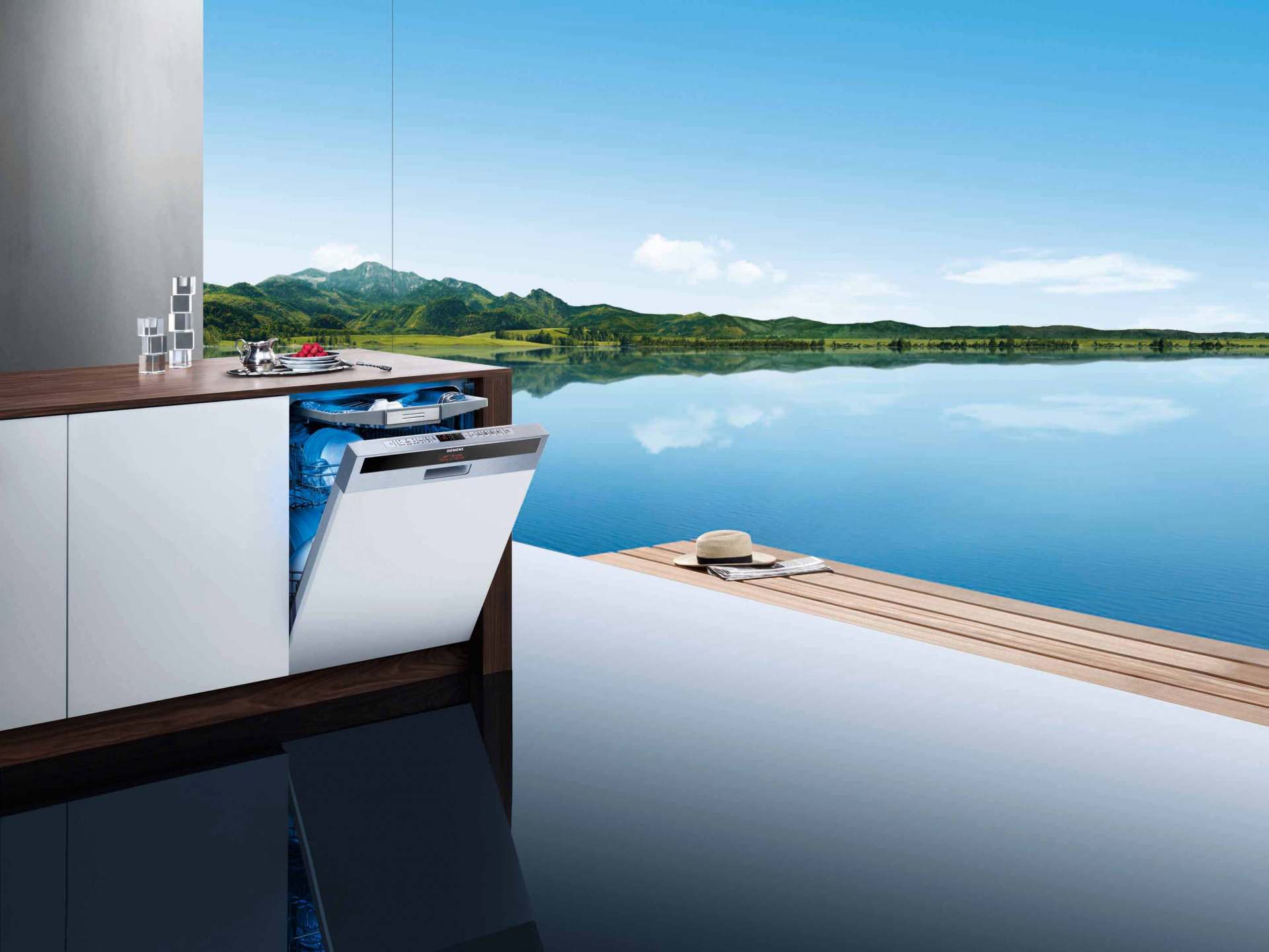 Die Reinigungsleistung bleibt bei geringstem Wasserverbrauch aber auf gewohnt erstklassigem Niveau. Dennoch grenzt es an ein kleines Wunder. Vollbracht wird dieses durch das innovative Wasserspeicher- und Wassermanagementsystem aus eigener Entwicklung. Es ist darauf spezialisiert, den größten Nutzen aus wenig Wasser zu ziehen. So wird beispielsweise Klarspülwasser gespeichert und im nächsten Spülgang für das grobe Vorreinigen verwendet. Insgesamt wälzt das System die eingesetzten sieben Liter Wasser so durchdacht um, dass sich ihre Wirkung auf ein Vielfaches erhöht – auf 4.100 Liter, um genau zu sein. Einem einwandfreien Spülergebnis steht so nichts mehr im Wege.