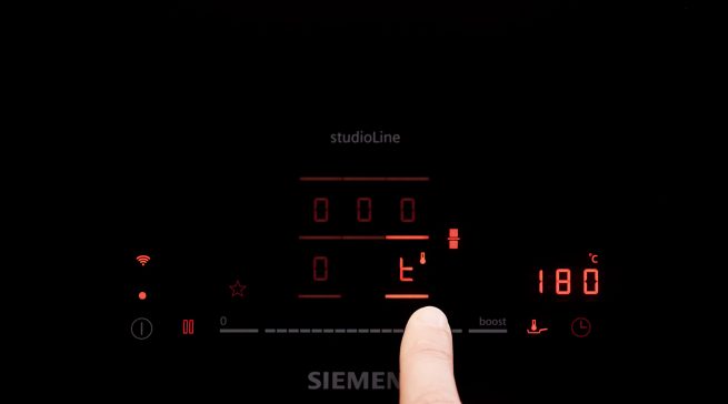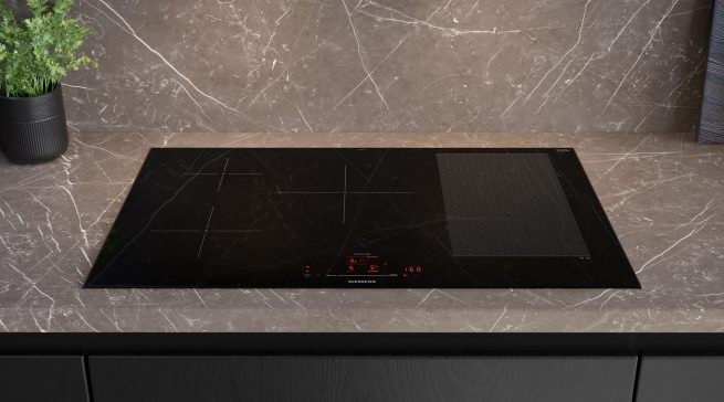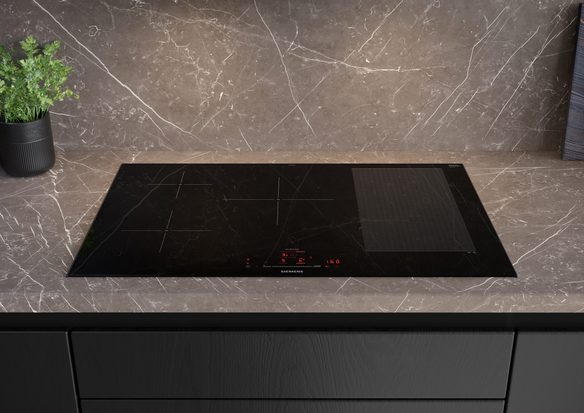 Vereinfacht hat Siemens auch die touchSlider Bedienung. Während auf der Glaskeramik nur eine schmale Linie sichtbar ist, erweckt das Anschalten alle Steuerungselemente zum Leben. Die automatische Topferkennung sorgt dabei für noch mehr Komfort: Einfach auf die jeweilige Kochzone stellen, Leistungsstufe wählen, fertig. Im Zusammenspiel mit den intelligenten flexZonen wird Kochen noch komfortabler.