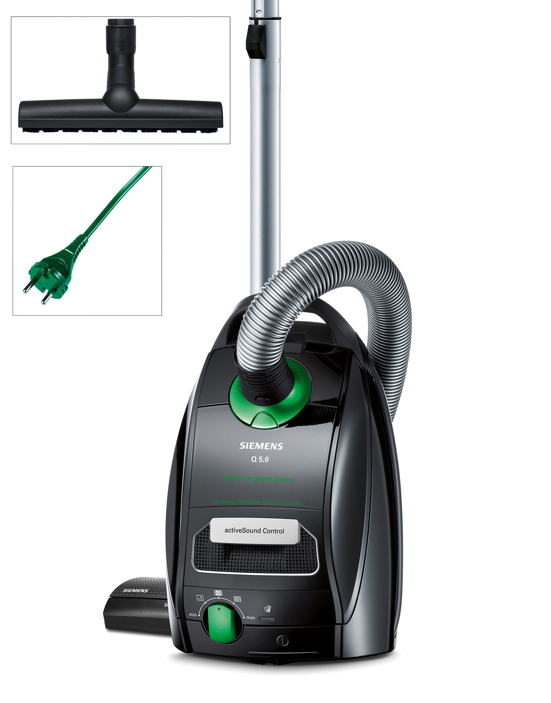 Der Siemens Q 5.0 extreme green power reduziert das Betriebsgeräusch auf nur noch 69 db(A), erbringt jedoch dieselbe Leistung wie ein 2.400 Watt Staubsauger von Siemens – und das bei bis zu 64 Prozent Stromersparnis. Damit ist der Q 5.0 die ideale Empfehlung für alle, die nach einer guten Kombination aus Geräuschreduktion und Energieeffizienz suchen.
