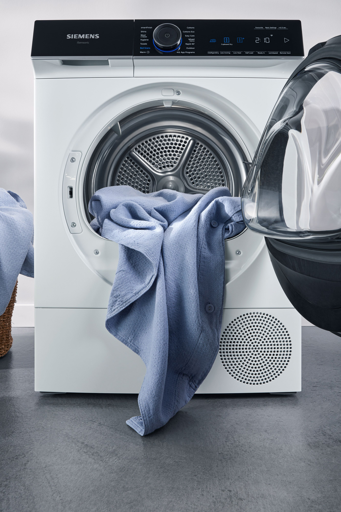 Der Siemens Wäschetrockner IQ700 ist der schnellste Trockner des Herstellers und kann von extraschnell auf extrasparsam schalten.