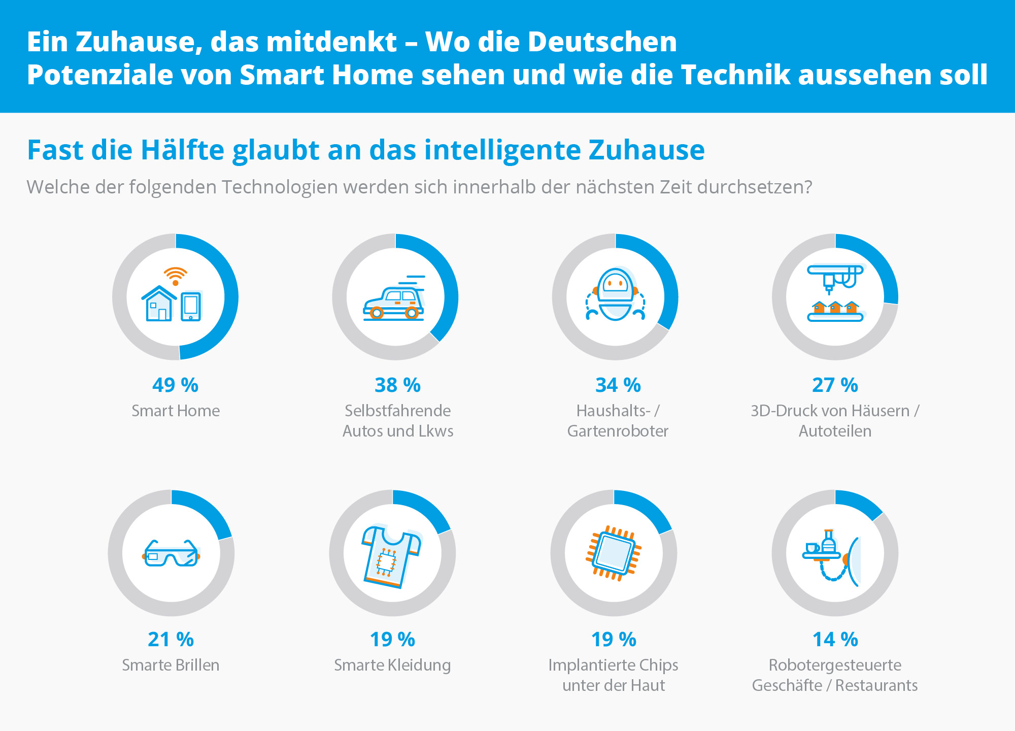 Fast die Hälfte der Deutschen ist davon überzeugt, dass sich das Smart Home in Zukunft durchsetzen wird. Waschmaschine, Ofen und Kühlschrank gehören auf jeden Fall dazu. Dass smarte Alarmsysteme zur Senkung der Einbruchrate führen können, hält immerhin mehr als jeder Dritte für wahrscheinlich. Dies ist das Ergebnis einer repräsentativen Studie im Auftrag von Medion, bei der auch untersucht wurde, wie sich die Deutschen die Anwendung der Technik im Detail wünschen. Für die Studie wurden mehr als 2.000 Personen im Alter von über 18 Jahren durch YouGov befragt.