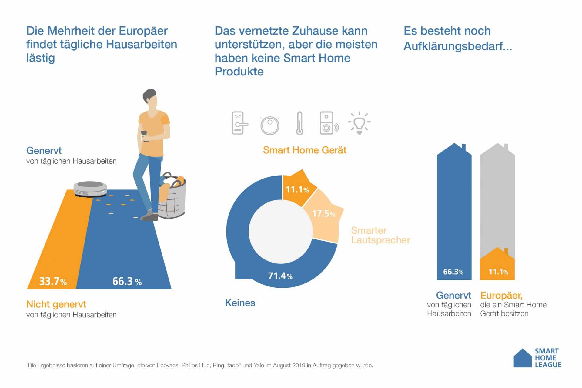 Die Smart Home Liga ist ein Zusammenschluss führender Smart Home Unternehmen aus den Bereichen Klimamanagement (tado°), Haushaltsgeräte (Ecovacs), Beleuchtung (Philips Hue), Sicherheit (Ring, Yale) und sprachgesteuerte Assistenten (Amazon Alexa, Google Assistant), die zusammenkommen, um zu zeigen, wie Technologie die Menschen zu Hause unterstützen kann.