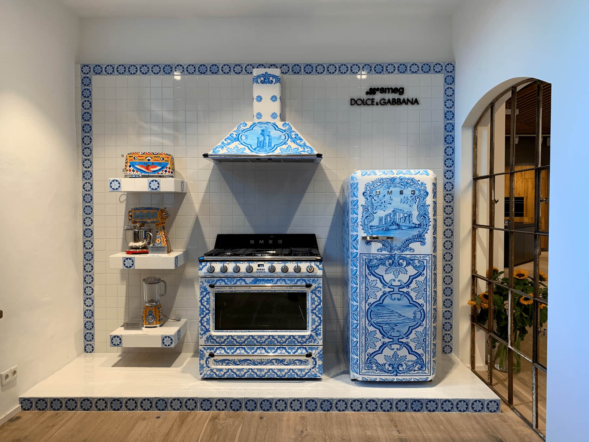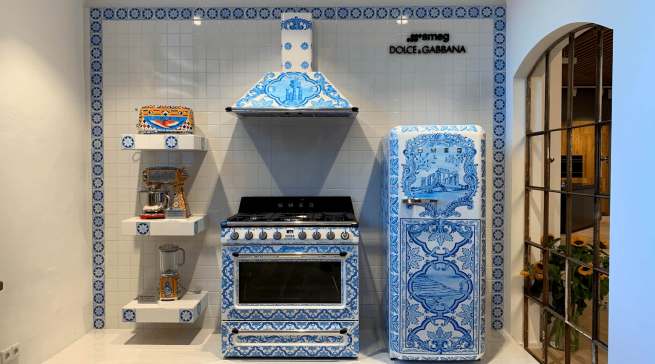 Im neugestalteten Showroom präsentierte Smeg – immer mit Blick auf die gebotenen Hygieneregeln – seine Highlights, darunter die Modellreihe 2020 der Einbau-Geschirrspüler sowie die klassische Designlinie Linea mit ihrem Induktions-Kochfeld in der Trendfarbe Silber. Natürlich stachen optisch besonders die Portofino-Kochzentren in Türkisblau sowie die zweite, mit Dolce & Gabbana entwickelte Sizilienkollektion im blauen Majolika-Dekor ins Auge. Zudem zeigte die Berliner Stahlmöbel-Manufaktur Noodles Noodles & Noodles Corp. erstmals eine Lösung für vollintegrierte Geschirrspüler.
