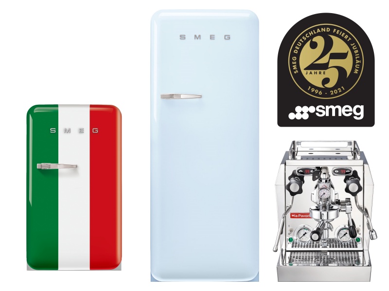 Zu diesem Anlass bedankt sich Smeg Deutschland bei seinen Fachhandelspartnern mit besonderen Jubiläums-Einkaufskonditionen auf ausgewählte Geräte zwischen dem 1.9. und 30.11.2021. Zudem unterstützt der Hersteller den Verkauf durch eine Gewinnspiel-Aktion für Endkunden, 25 Wochen lang.