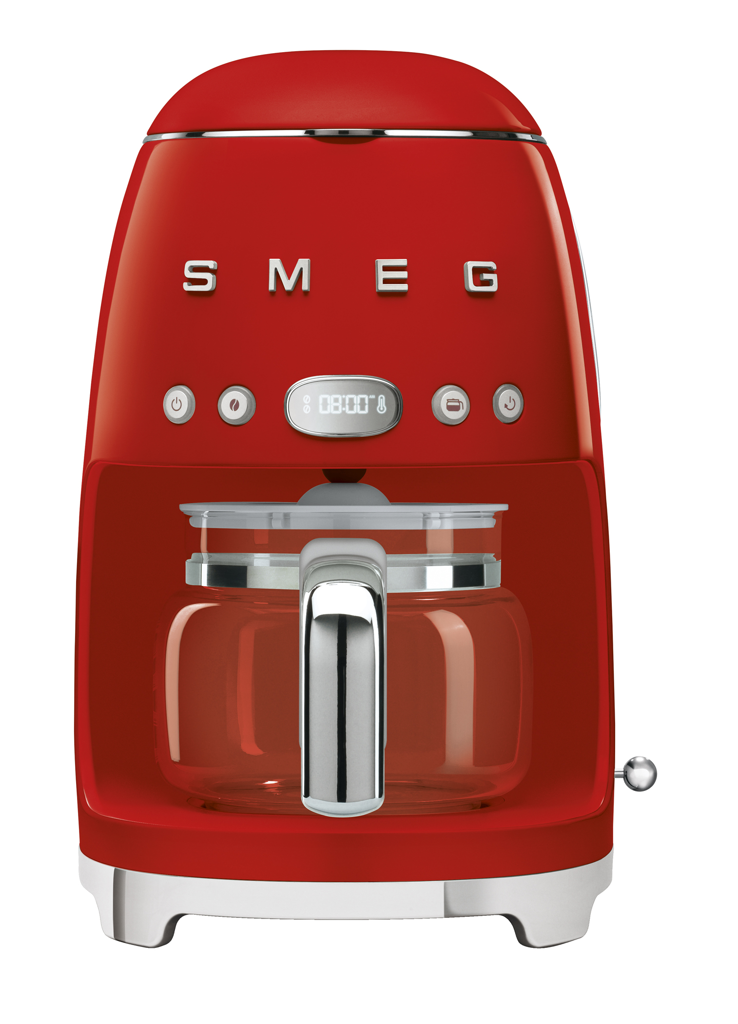Die Smeg Filterkaffeemaschine DCF01 ein Volumen für bis zu 10 Tassen. Der programmierbare Auto-Start-Modus brüht den frischen Kaffee schon vor dem Aufstehen auf.