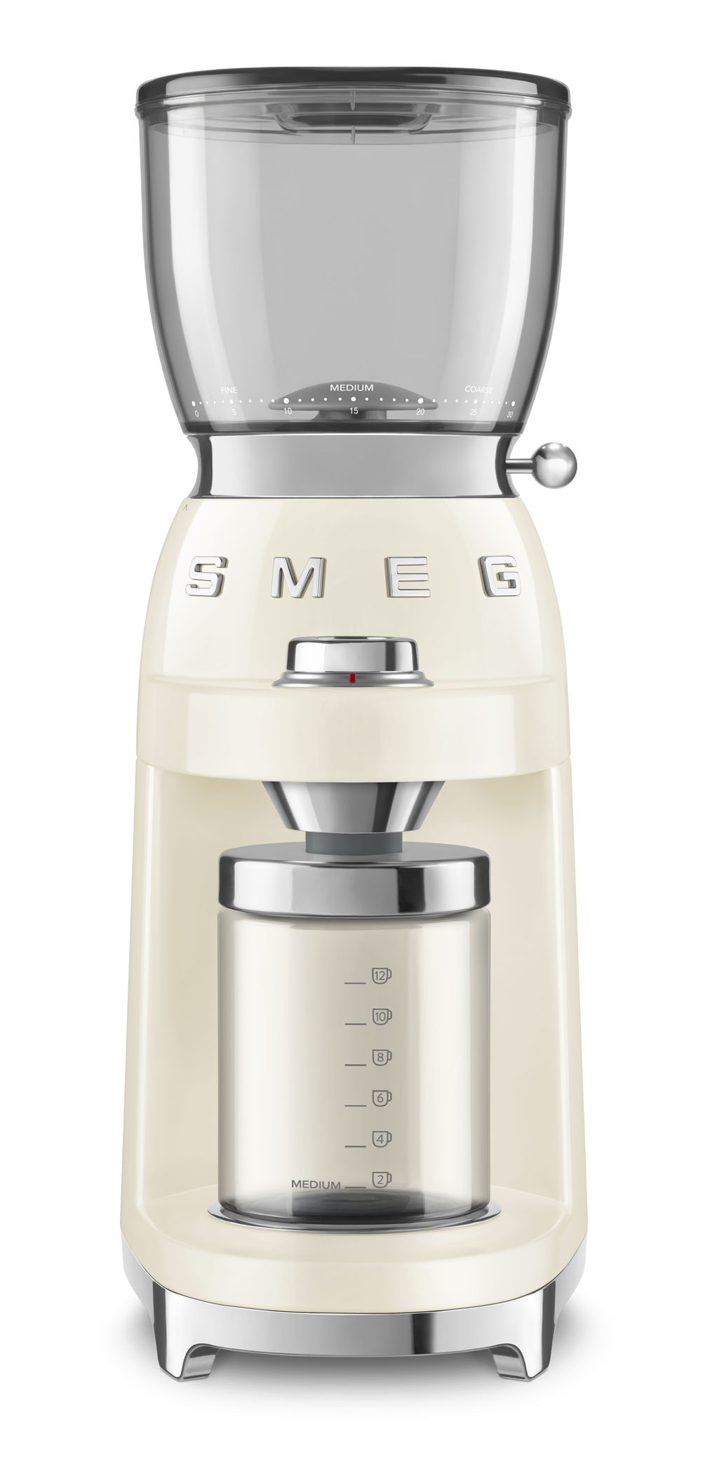 Die Smeg Kaffeemühle CGF01 ist im 50’s Retro-Style gefertigt.