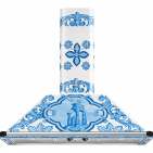 Die Herd-Frontseite verzieren reiche, traditionelle Majolika-Muster. Auf der Wandhaube präsentiert sich zentral die Ruine eines Tempels, umspielt von Blättern und Ranken. So nimmt dieses luxuriöse Designensemble den Betrachter mit auf eine Reise durch die Jahrtausende, die auch die aromatischen Gerichte der Mittelmeerinsel prägten.