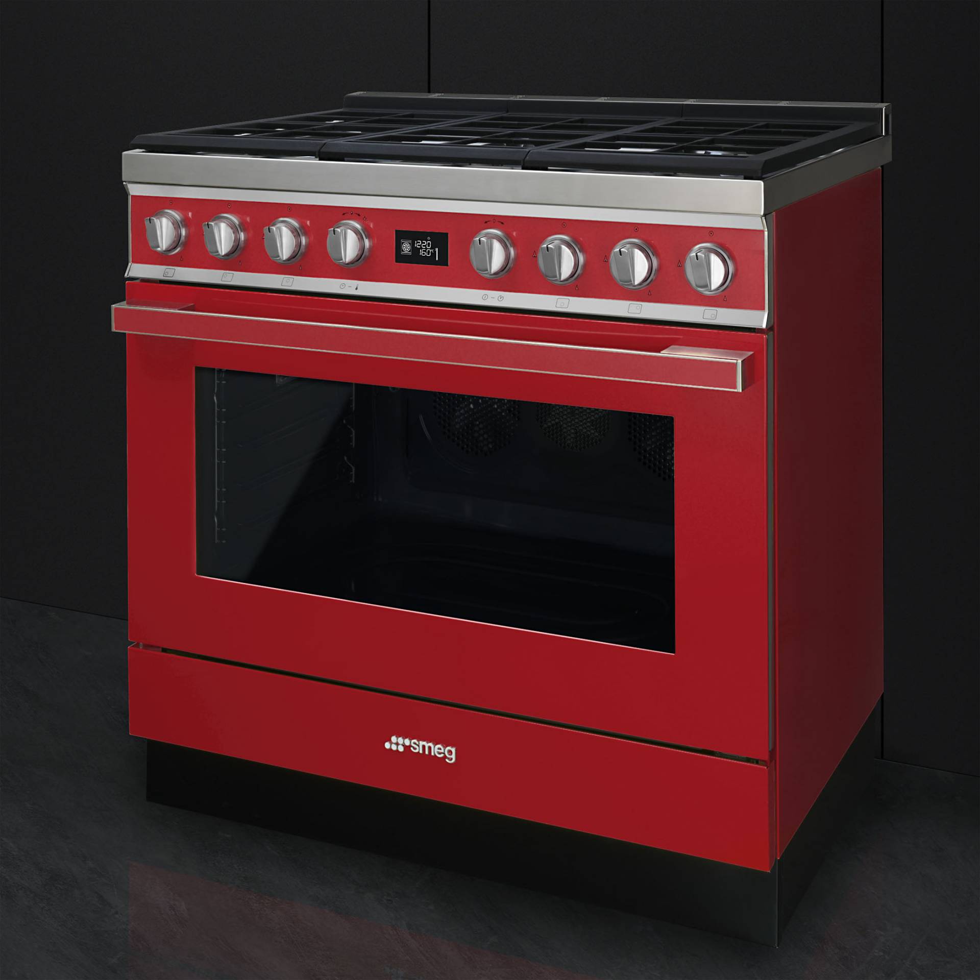 Das Smeg Kochzentrum Portofino ist ein XXL-Backofen mit bis zu fünf Garebenen. Auf diesen lassen sich mehrere Gerichte gleichzeitig zubereiten. Drei Ventilatoren verteilen die erwärmte Luft besonders gleichmäßig – für Spitzenergebnisse beim Braten und Backen. Gerichte werden damit auch schneller gar. Erhältlich ist der Backofen mit Induktionskochfeld oder mit Gasbrennern.