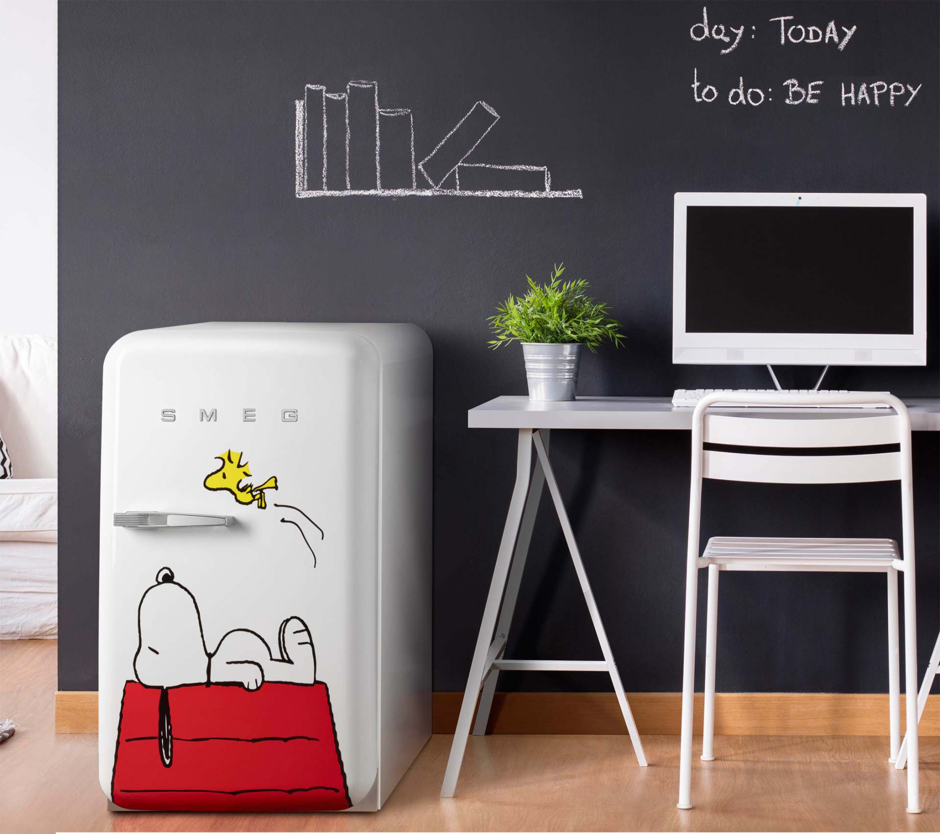 Der Smeg Kühlschrank FAB10 Peanuts erscheint in einer weltweit limitierten Auflage von 70 Geräten zum 70. Geburtstag der Peanuts. In Deutschland und Österreich kommen lediglich 15 Geräte in den Handel: Snoopy in typischer Pose auf dem Dach seiner Hundehütte, begleitet von seinem engsten Kumpel Woodstock. Als Echtheitsnachweis trägt jedes Exemplar des weißen Smeg FAB10 eine silberne Plakette mit individueller Nummer