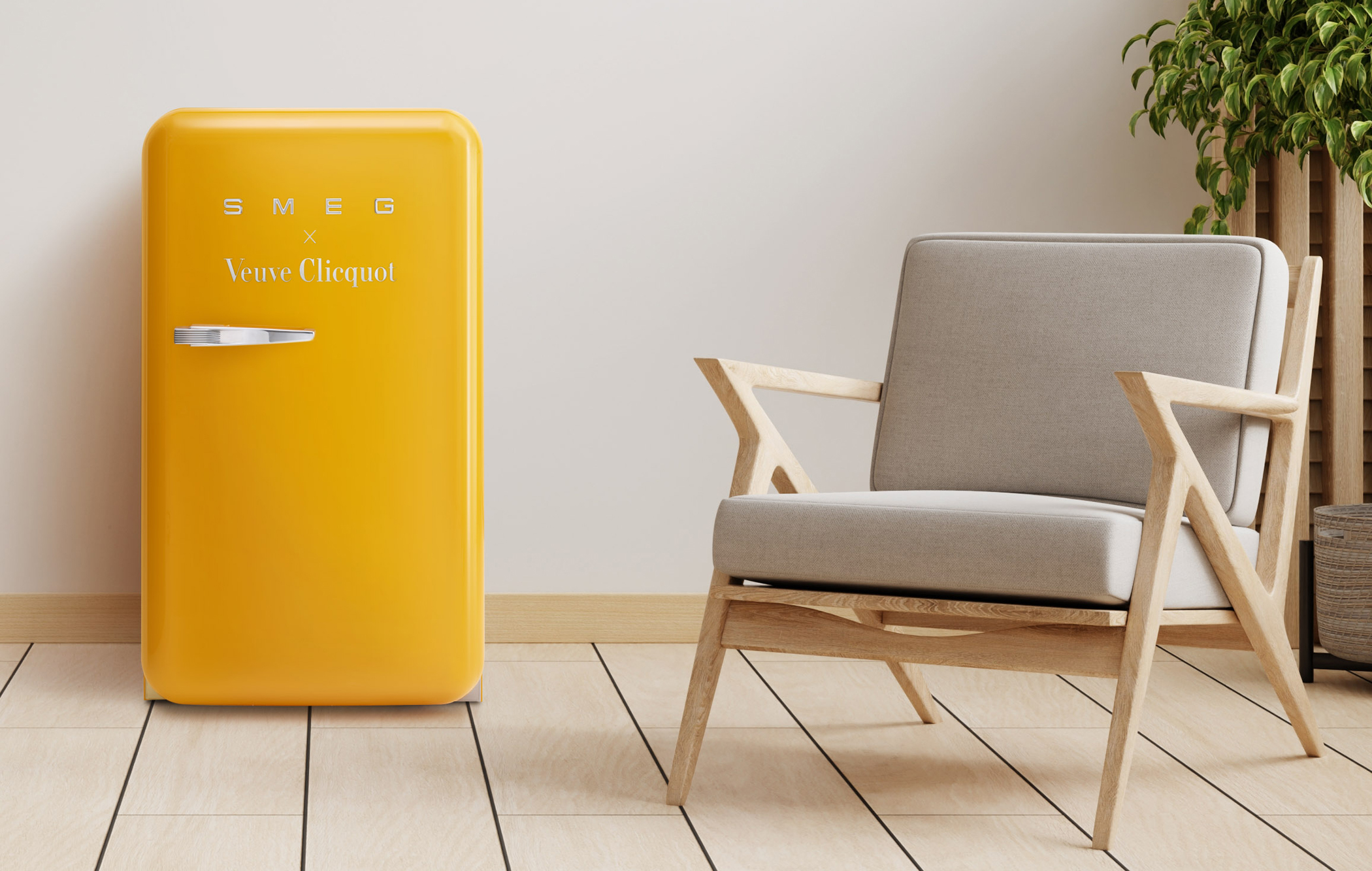 Der Smeg Kühlschrank FAB10 Veuve Clicquot ist eine Sonderedition zum 250-jährigen Jubiläum des Champagners.