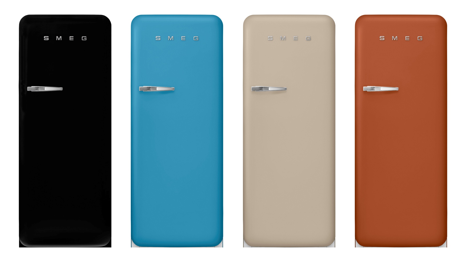 Der Smeg Kühlschrank FAB28 ist in weiteren vier matten Farbnuancen erhältlich: Perfectly Pale (Creme-Matt), Rust, Light Blue und Black-Matt.