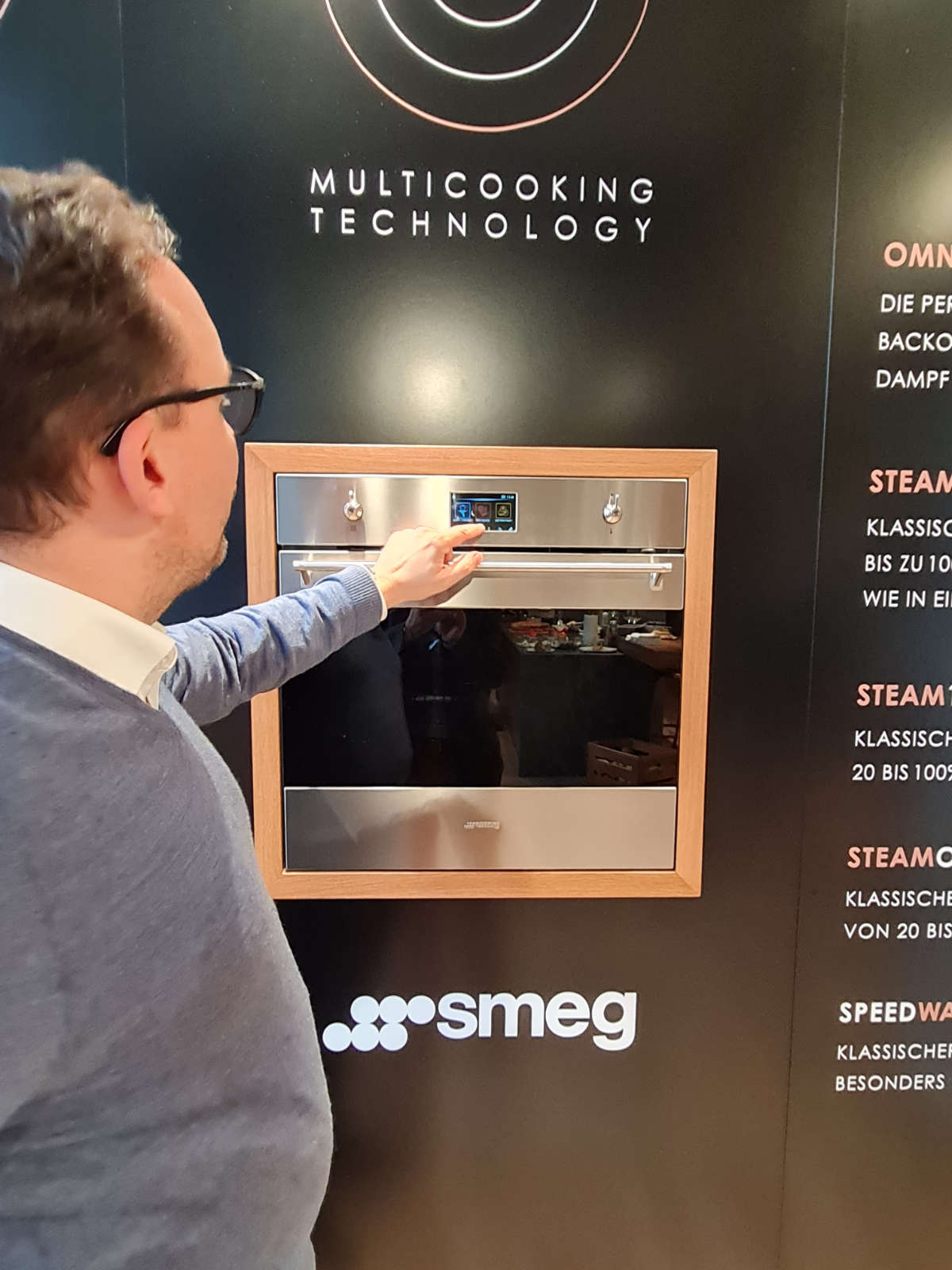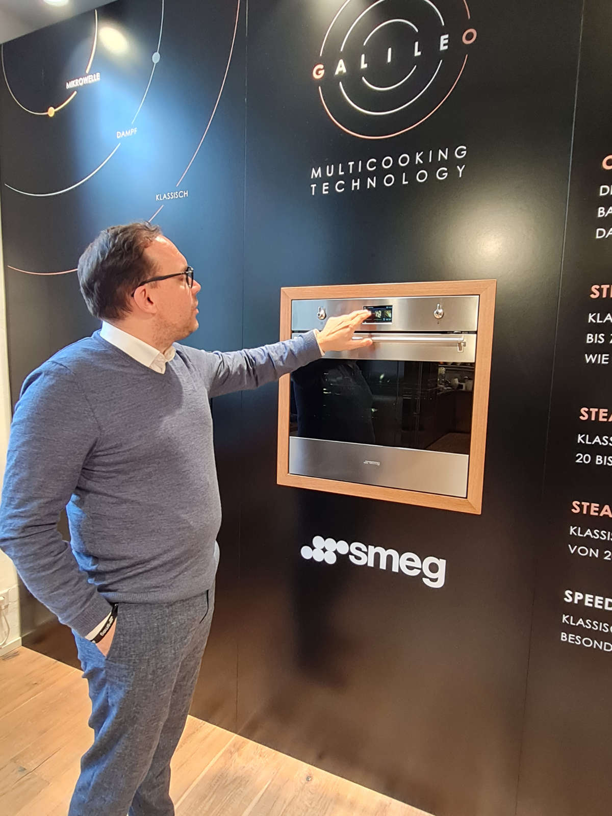Der komplett neu gestaltete Showroom von Smeg auf Gut Böckel stand ganz im Zeichen von Galileo, der innovativen Backofen-Generation für die Designlinien Dolce Stil Novo, Classici und Linea. Technisches Highlight der nach dem italienischen Universalgelehrten benannten Geräte ist der völlig neu konzipierte Garraum.