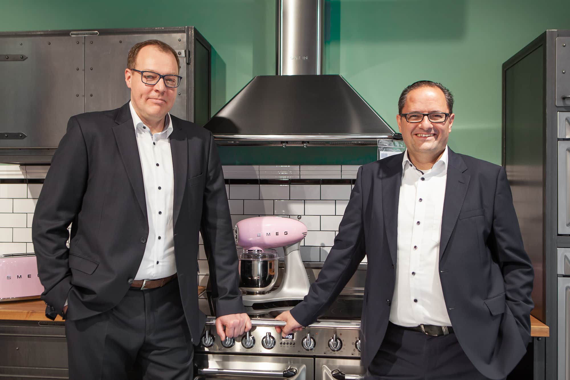 Karsten K. Schönfeld (Vertriebsleiter Küchen-/Möbelfachhandel) und Robert Tsanakaliotis (Vertriebsleiter Elektrofachhandel) verantworten den nun nach Kanälen strukturierten Vertrieb bei Smeg Deutschland.