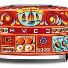 Der Smeg Wasserkocher Dolce & Gabbana „Sicily is my Love“ ist mit den Motiven der sizilianischen Karren in verschiedenen leuchtenden Farben dekoriert.
