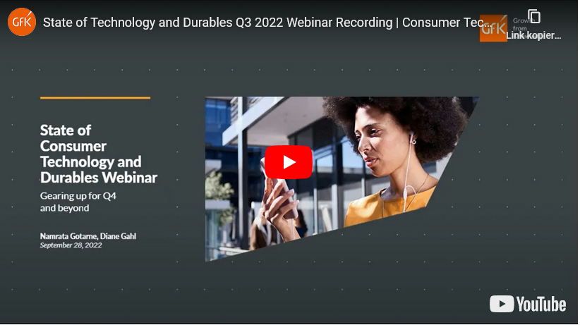 Im Webinar „State of Consumer Technology and Durables Webinar: Gearing up for Q4 and beyond“ stellen Experten von GfK anhand der Ergebnisse des neuen Reports vor, wie Händler und Hersteller ihre Strategien anpassen können, um die Herausforderungen im 4. Quartal 2022 erfolgreich zu meistern. Das Webinar finden Sie hier.
