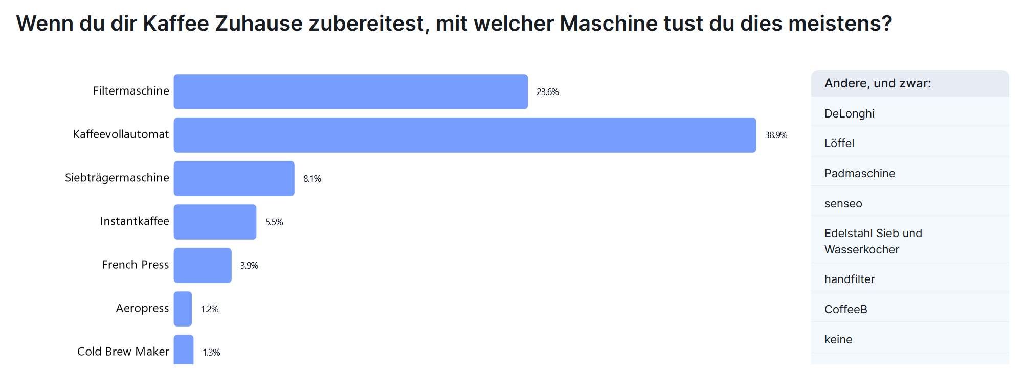 Dabei dient Kaffee nicht nur als Wachmacher (35%), sondern auch zur Entspannung: 39% trinken ihn, um abzuschalten. Diese tiefe Verbundenheit zeigt sich auch in den Investitionen, die die Befragten in ihren Kaffeegenuss stecken: 23% haben zwischen 201 und 500 Euro für ihre Kaffeemaschine ausgegeben, während 28% mehr als 500 Euro investiert haben.