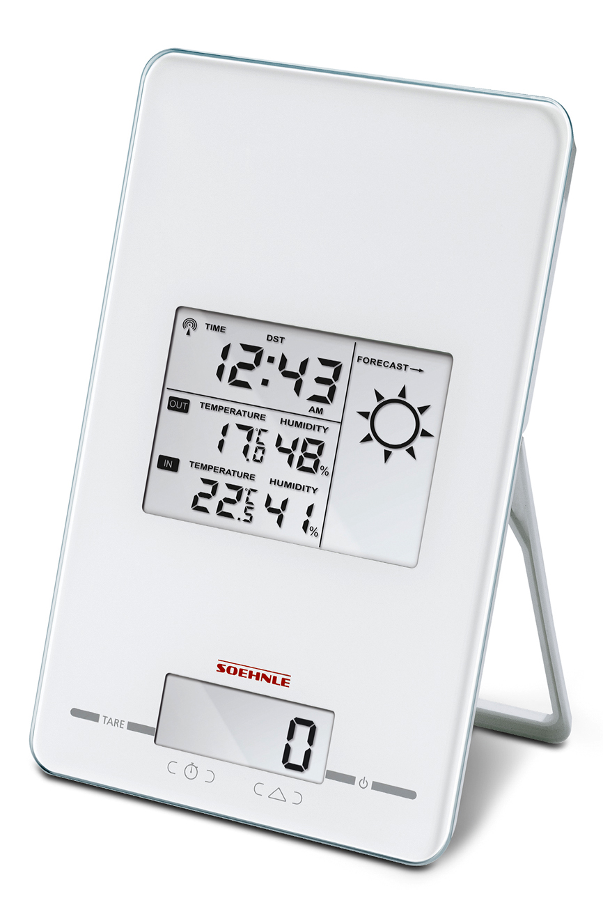 Die Soehnle Küchenwaage Page Meteo Center vereint fünf Funktionen. Wird es heute noch einmal regnen? Wann müssen die Kinder geweckt und wann die Brötchen aus dem Ofen geholt werden? Diese alltäglichen Fragen beantwortet das Gerät auf einen Blick,