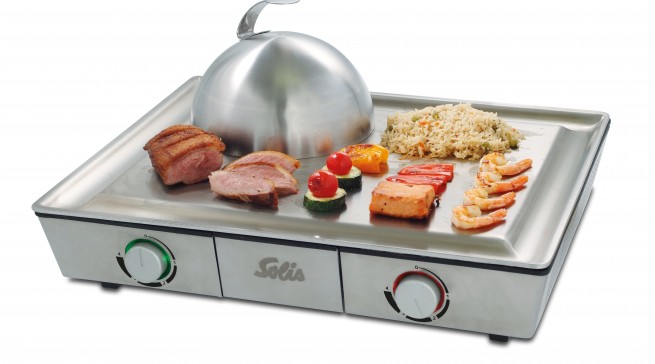 Tempi passati. Solis anno 2015 konzentriert sich bei seinem IFA-Auftritt in Berlin vor allem auf das Thema Küche – und hat mir Carsten Ritter einen obersten Verkäufer gefunden, der nach Bodenpflege und Airblade bei Dyson das Thema Küche nicht nur verkauft, sondern den Genuss authentisch vermittelt und lebt. Multifunktionale Top-Produkte für die Nische in der Küche sind beisielsweise der „Combi-Grill 3 in 1“, der neben Tischgrill auch Raclette und Fleischfondue für bis zu acht Personen kann oder der „Teppanyaki@Home“, mit dem sich unter einer Glocke auch Dampfgaren lässt. Und auch der „Multi Slow Juicer“ ist ein kleiner Alleskönner: Dank verschiedener Filter-Aufsätze gelingen Saft aus Obst und Gemüse genauso wie Smoothies und Frozen Desserts.