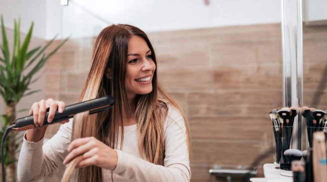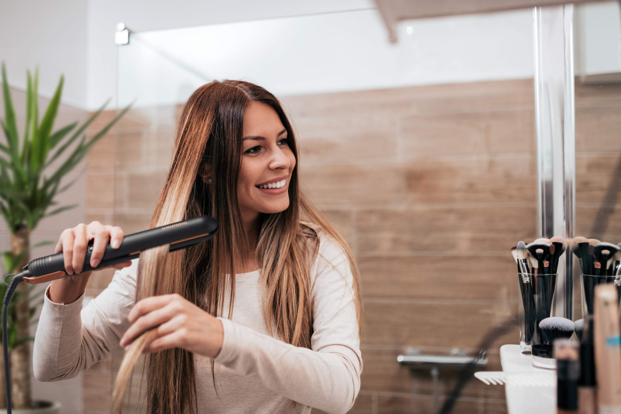Styling-Tipp: Für einen Blowout-Look das Haar glatt ziehen, Spitzen nach innen eindrehen oder mit Zickzack-Bewegungen natürliche Wellen erzeugen.