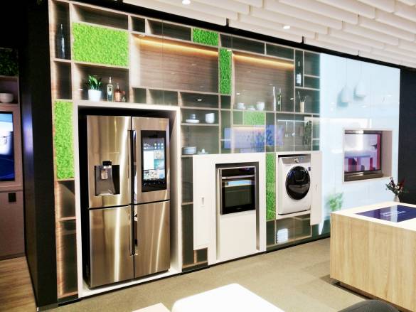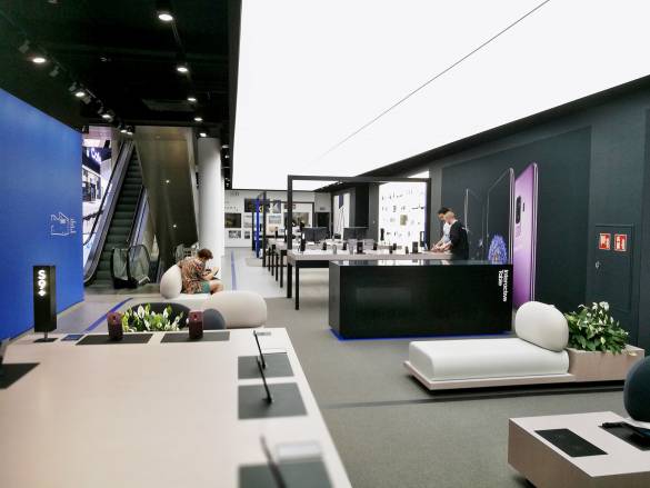 Das Erdgeschoss lädt mit der The Frame- und der S Pen-Galerie zum Staunen ein. In der Connect Lounge können Kunden mobile Highlights wie das Galaxy S9 auf Herz und Nieren testen und im VR 4D-Kino mithilfe der Samsung Gear VR auf Schatzsuche gehen. Der erste Stock demonstriert in einer Internet of Things-Lounge mit Hausgeräten wie Family Hub-Kühlschränken und AddWash-Waschmaschinen die technischen Highlights und Vernetzbarkeit der Samsung Geräte. Darüber hinaus werden aktuelle QLED TV- und Audio-Highlights für das Heimkino vorgestellt. Eine stylische Café Bar lädt zum Verweilen ein, in den Lounge-Bereichen können nicht nur die eigenen Batterien, sondern mittels Wireless Charging auch die von kompatiblen Mobilgeräten aufgeladen werden.
