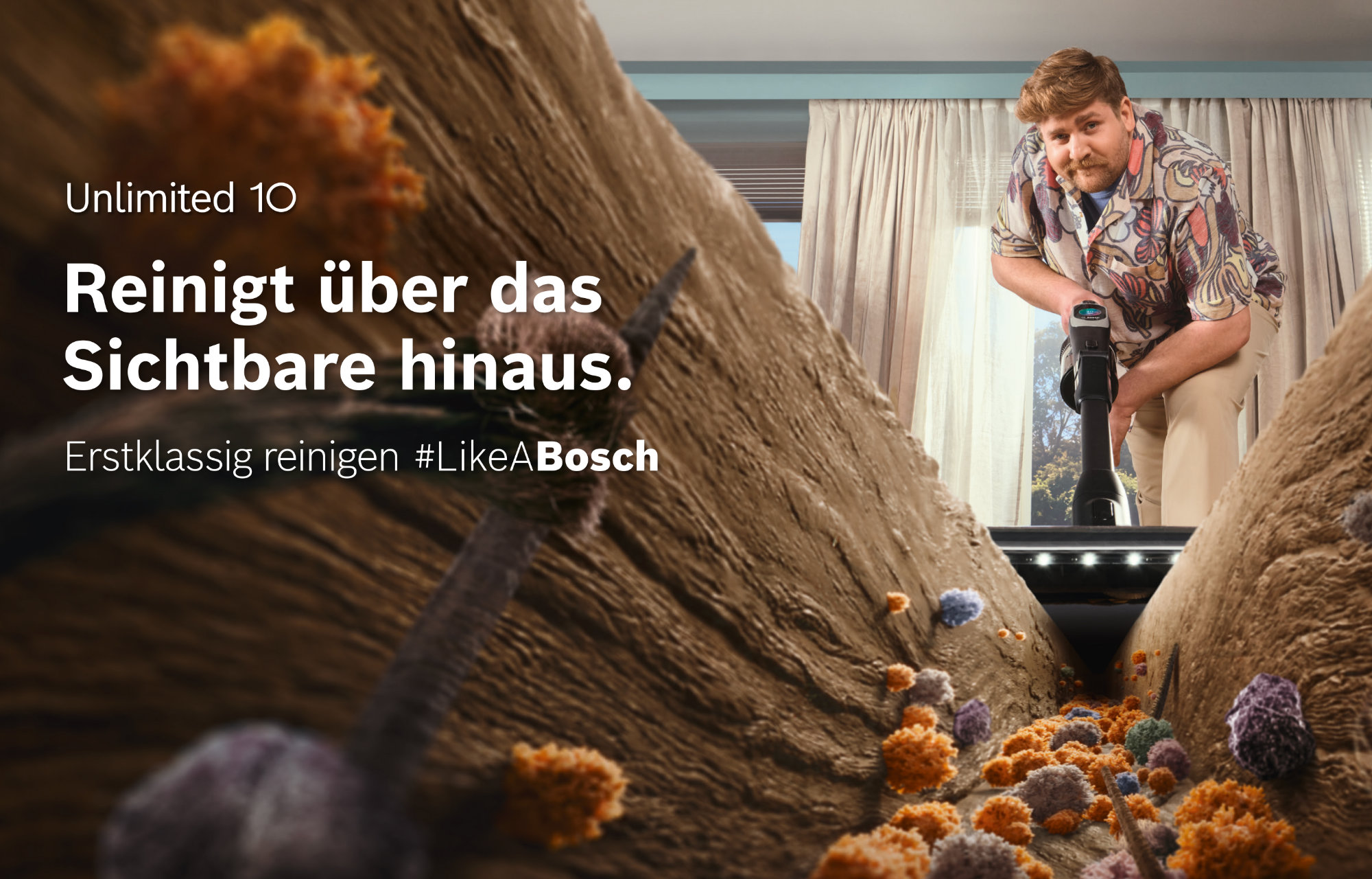 Die Kampagne für den Unlimited 10 startet im November unter dem Motto „Erstklassig reinigen #LikeABosch“ Im Mittelpunkt steht die patentierte MicroClean Technology des Saugers. Mit einem breit angelegten Medien-Mix werden verschiedene Zielgruppen angesprochen. Durch die Ausspielung auf allen relevanten Social-Kanälen, darunter TikTok, Instagram und Facebook, Online-Banner und Werbeplatzierungen auf Native-Plattformen erreicht die Kampagne über 70 Mio. Kontakte an den entscheidenden Touchpoints. Ein Highlight ist dabei der neue #LikeABosch Spot, der über Advanced TV und Prime Video ausgespielt wird und auch auf Social Media zu sehen ist. Abgerundet wird die Launchkampagne durch reichhaltige PoS-Materialien.