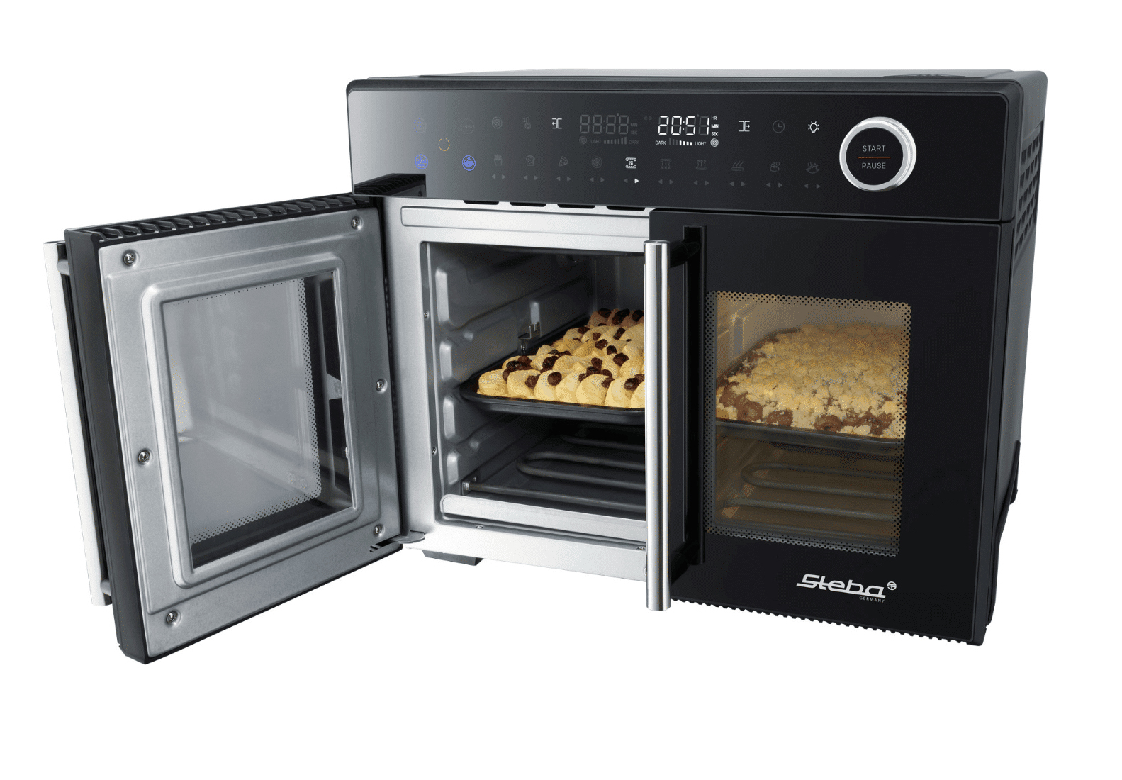 - 2 kleine Garräume mit je 12 l Volumen zum gleichzeitigen Zubereiten mit unterschiedlichen Programmen