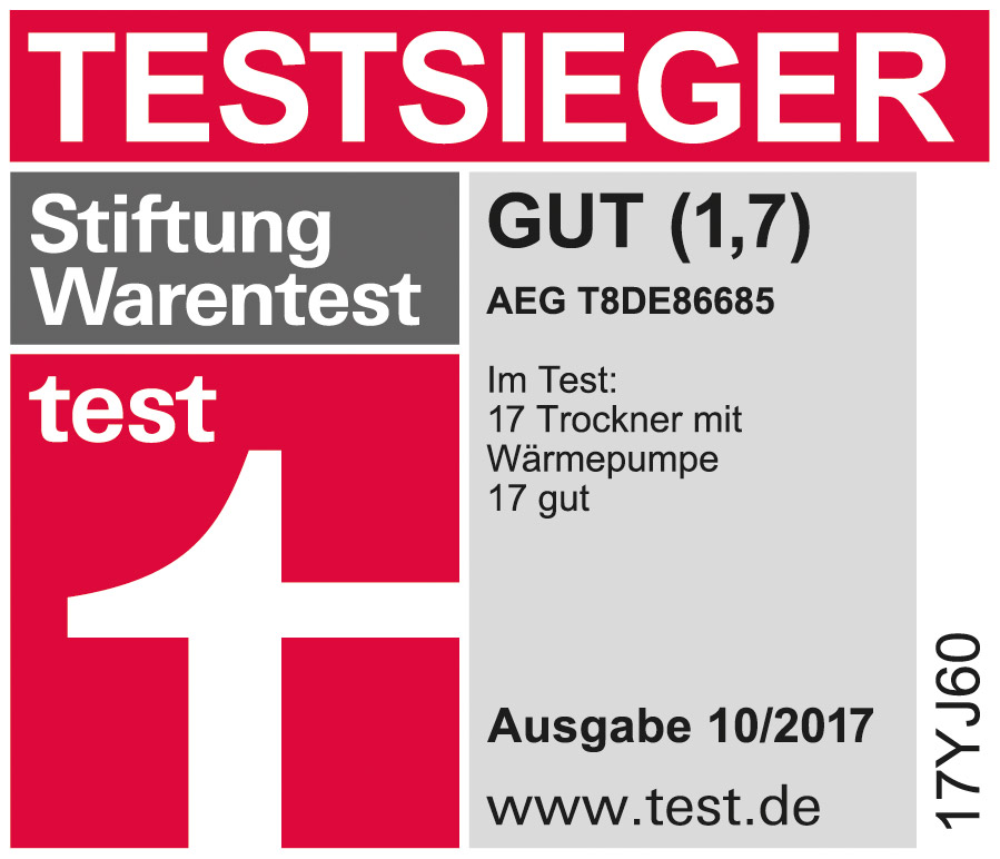 Rund vier Fünftel der mehr als eine Million verkauften Trockner in Deutschland sind Geräte mit Wärmepumpe. Klarer Testsieger wurde das Modell Lavathern T8DE86685 von AEG mit der Energieeffizienzklasse A+++, das als einziges die Bestnote 1,7 erhält. Das A++ Modell Lavatherm T8DE76585 liegt mit der Gesamtnote 1,9 auf dem vierten Platz.
