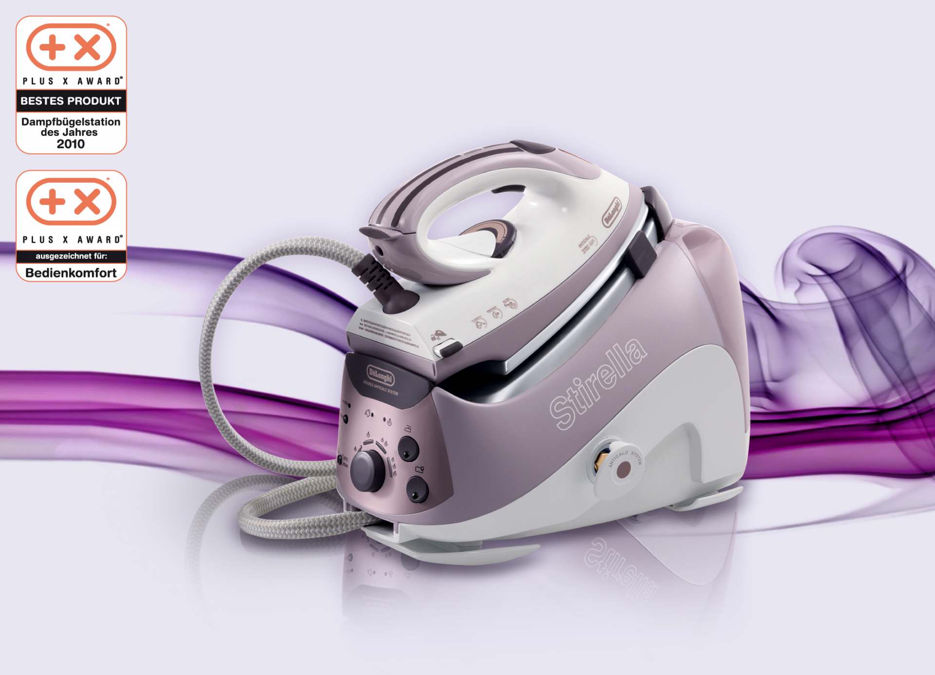 In den letzten Jahren hat De’Longhi seine Spezialistenfunktion im Segment Bügeln weiter gefestigt und ausgebaut. So fand erstmals 2009 auf der IFA in Berlin die 1. Deutsche Bügelmeis- terschaft powered by De’Longhi statt, die in diesem Jahr in die zweite Runde geht. Alle De’Longhi Dampfbügelstationen überzeugen mit viel Power, einfacher Handhabung und höchs- tem Bedienkomfort sowie mit besten Bügelergebnissen. Dank der patentierten Gemini-Bügelsohle – eine Kombination aus Keramik und Edelstahl – wird das Bügeln mit der Premium- Dampfbügelstation Stirella VVX 1870 GAT zum Erlebnis. Die Keramik verteilt die Wärme perfekt bis zum äußeren Rand des Bügeleisens, der Edelstahl-Kern gewährleistet sehr gute Gleiteigenschaften des „heißen Eisens“. Auch die Jury zeigt sich von so viel Know-how und Benutzerfreundlichkeit begeistert und prämierte die Stirella VVX 1870 GAT nicht nur mit einem Plus X Award-Siegel für Bedienkomfort, sondern auch mit der exklusiven Auszeichnung „Bestes Produkt des Jahres 2010“.