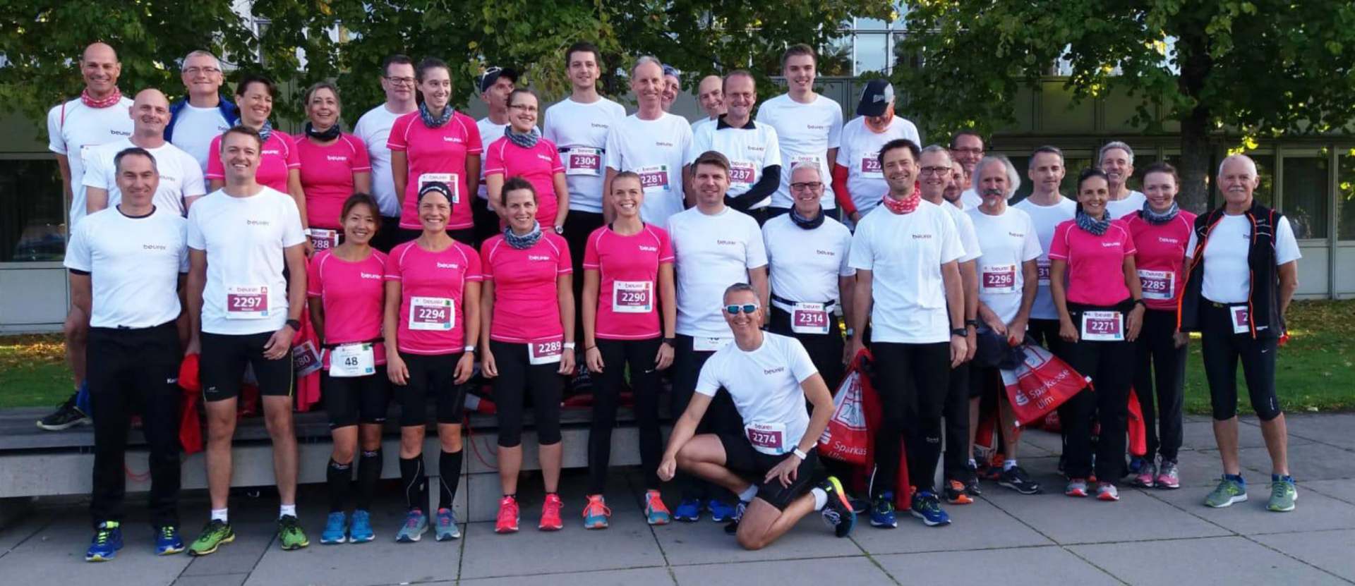 Mehr als 150 Läuferinnen und Läufer traten für das Team Beurer in verschiedenen Disziplinen an. Damit schaffte es die Firmenmannschaft mit 1.997,01 gelaufenen Kilometern auf Platz 10 in der Hensoldt-Teamwertung. Zusätzlich zum Sponsoring des Halbmarathons war Beurer mit Ständen auf der Marathonmesse und dem Münsterplatz vertreten.