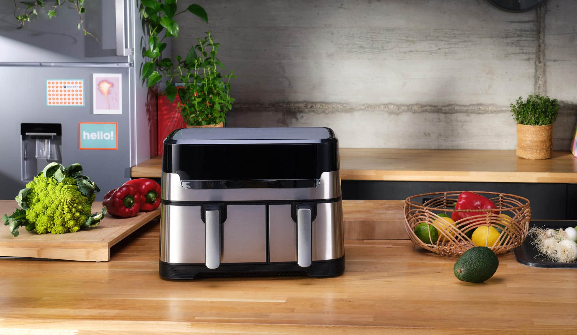 Die Heißluftfritteuse- Dual Easy Fry & Grill ermöglicht mit einer Kapazität von 8,3 Liter und Doppelkammer-System, das sich auf zwei asymmetrische, unabhängige Garkammern aufteilt, das gleichzeitige Zubereiten unterschiedlicher Gerichte.