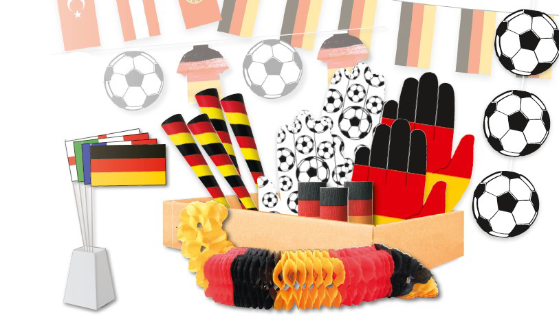 Für eine lebendige Atmosphäre und eine starke Sichtbarkeit am POS sorgen umfangreich gestaltete Dekopakete in den Farben Schwarz-Rot-Gold. Von Fahnen und Wimpelketten bis hin zu Fan-Tröten ist für den Technik-Profi-Fachhändler alles verfügbar, um die Mega-Sportevents des Sommers gebührend zu feiern.