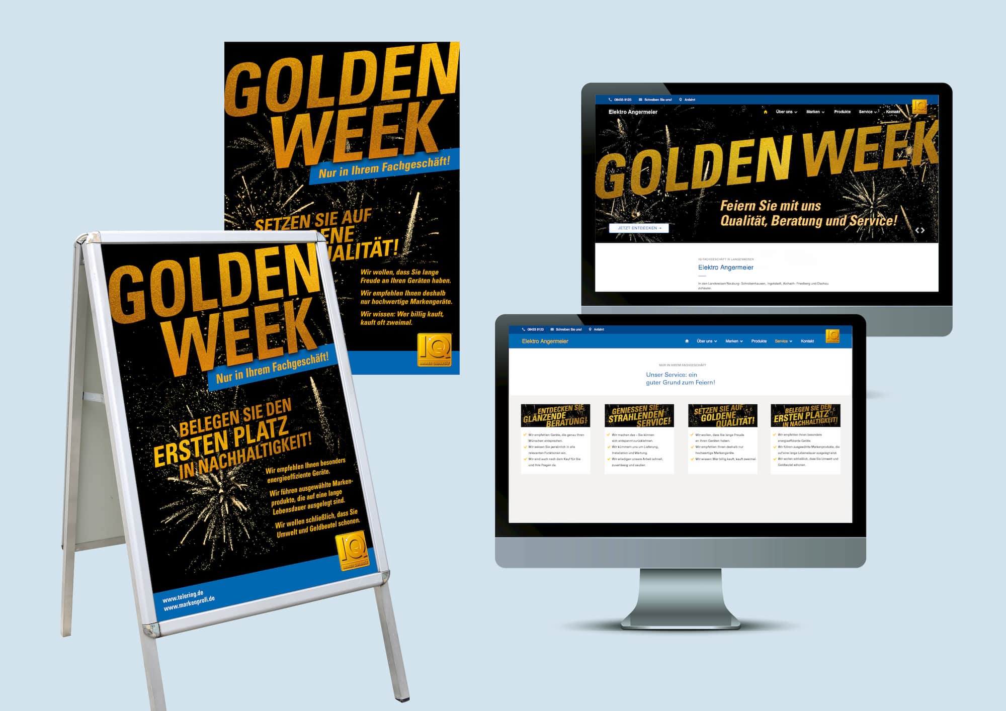Um der „Golden Week“ die notwendige Aufmerksamkeit zu verschaffen und Passanten in die mehr als 1.950 Fachgeschäfte zu lenken, stellt die telering-Zentrale in Mainz ihren Fachhändlern aufmerksamkeitsstarke, mit goldener Schrift gestaltete Poster zur Verfügung. Außerdem werden auf den IQ-Webseiten der Fachhändler Banner und Themenseiten ausgespielt, die die herausragende Qualität von Produkten und Service unterstreichen.