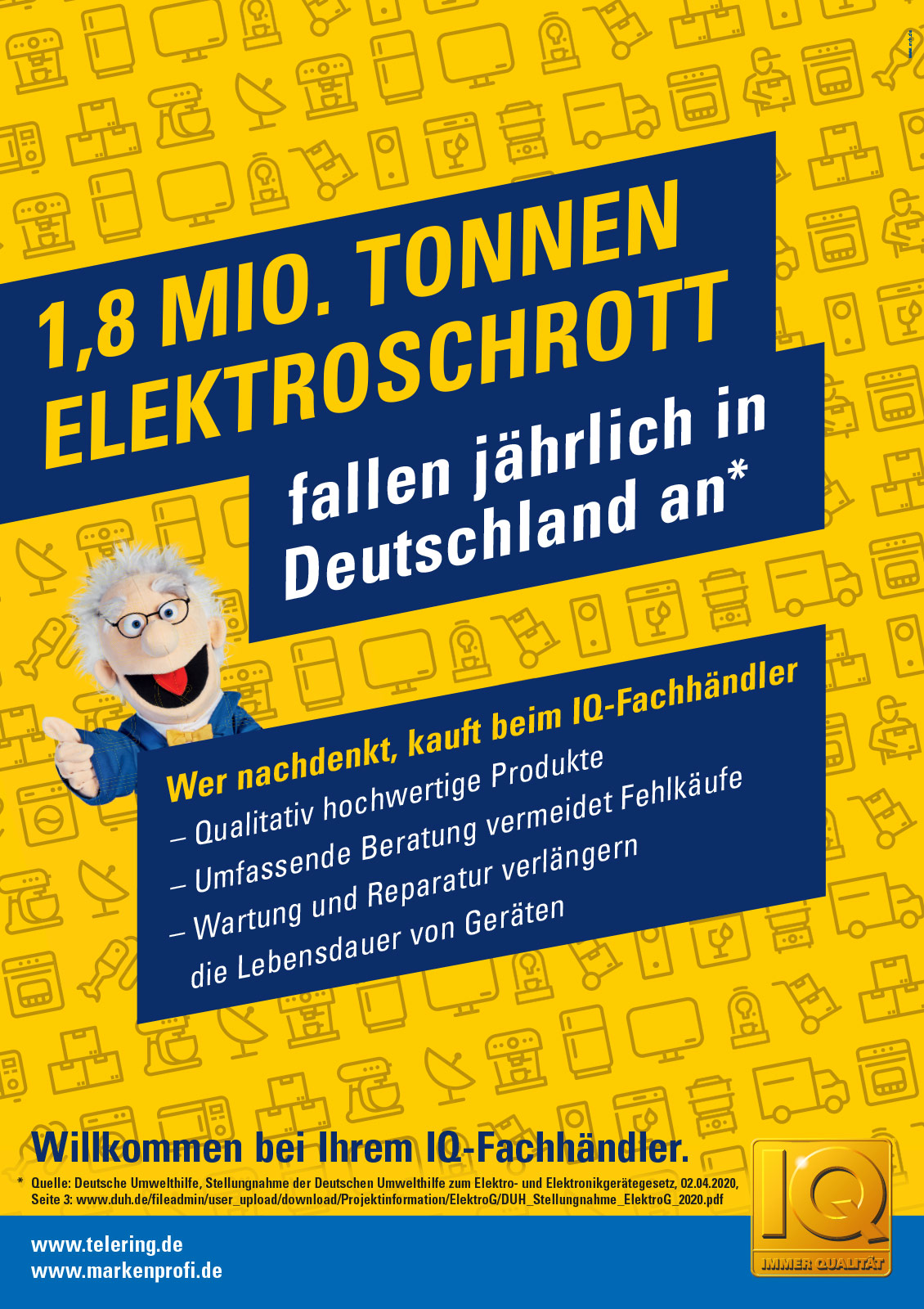telering weist da einen einfachen Weg aus dem Dilemma auf: Professor IQ rät zum Einkauf beim lokalen IQ-Fachhändler. Der Qualitätsbotschafter der Kooperation nennt die vielfältigen Serviceleistungen, von denen nicht nur der einzelne Kunde, sondern alle profitieren: So verlängern beispielsweise Wartung und Reparatur die Lebensdauer von Geräten, die umfassende Beratung vermeidet Fehlkäufe und der Einkauf vor Ort schont Ressourcen.