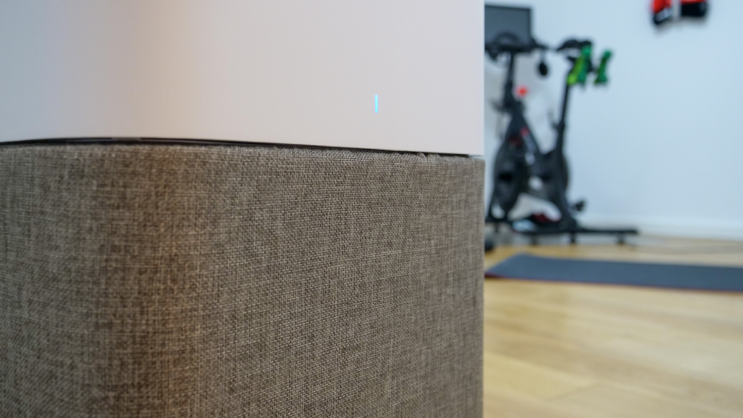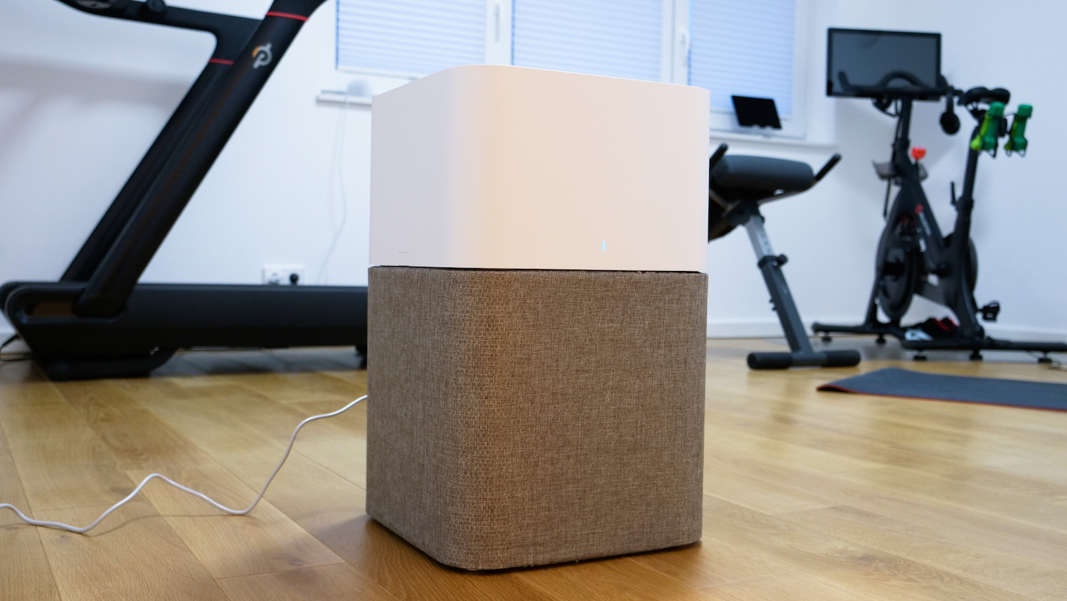 Der Minimalismus des Geräts gefällt uns in diesem Raum sehr gut, da es uns hier wirklich nur um saubere Luft geht. Das Gerät läuft einfach dauerhaft im Auto-Modus und wir müssen uns um nichts kümmern. Zudem sorgt der Aufbau dafür, dass der Luftreiniger extrem leise arbeitet (in der kleinsten Stufe kaum hörbare 23 dB(A)) und kaum Strom verbraucht (4 bis maximal 38 W in der höchsten Stufe).