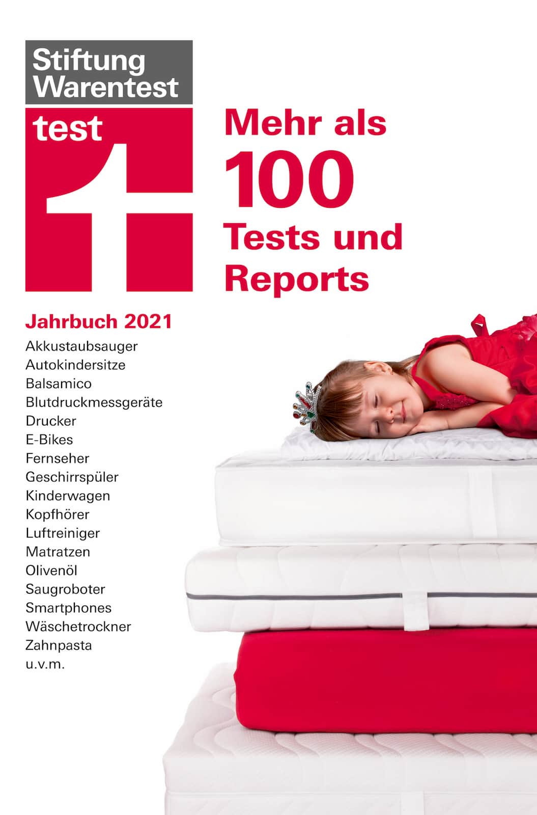 Das „test“-Jahrbuch 2021 hat 285 Seiten und kostet 12,90 EUR (als gebundene Ausgabe 14,90 EUR). Es ist im Zeitschriftenhandel erhältlich oder kann hier bestellt werden.