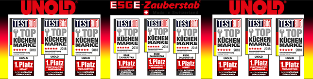 Dreifacher Erfolg für Unold bei der Wahl zur Top Küchenmarke 2018 von „Testbild und Statista: Der ESGE Zauberstab wurde für seine Langlebigkeit und Funktionalität bei den Stabmixern/Zerkleinerern genauso als Kategorie-Sieger ausgezeichnet wie der Unold-Backmeister bei den Brotbackautomaten (Gesamtsiger, zudem für Handhabung und Langlebigkeit) und die Unold Eismaschine als Gesamtsieger für die Funktionalität und das Preis-/Leistungsverhältnis.