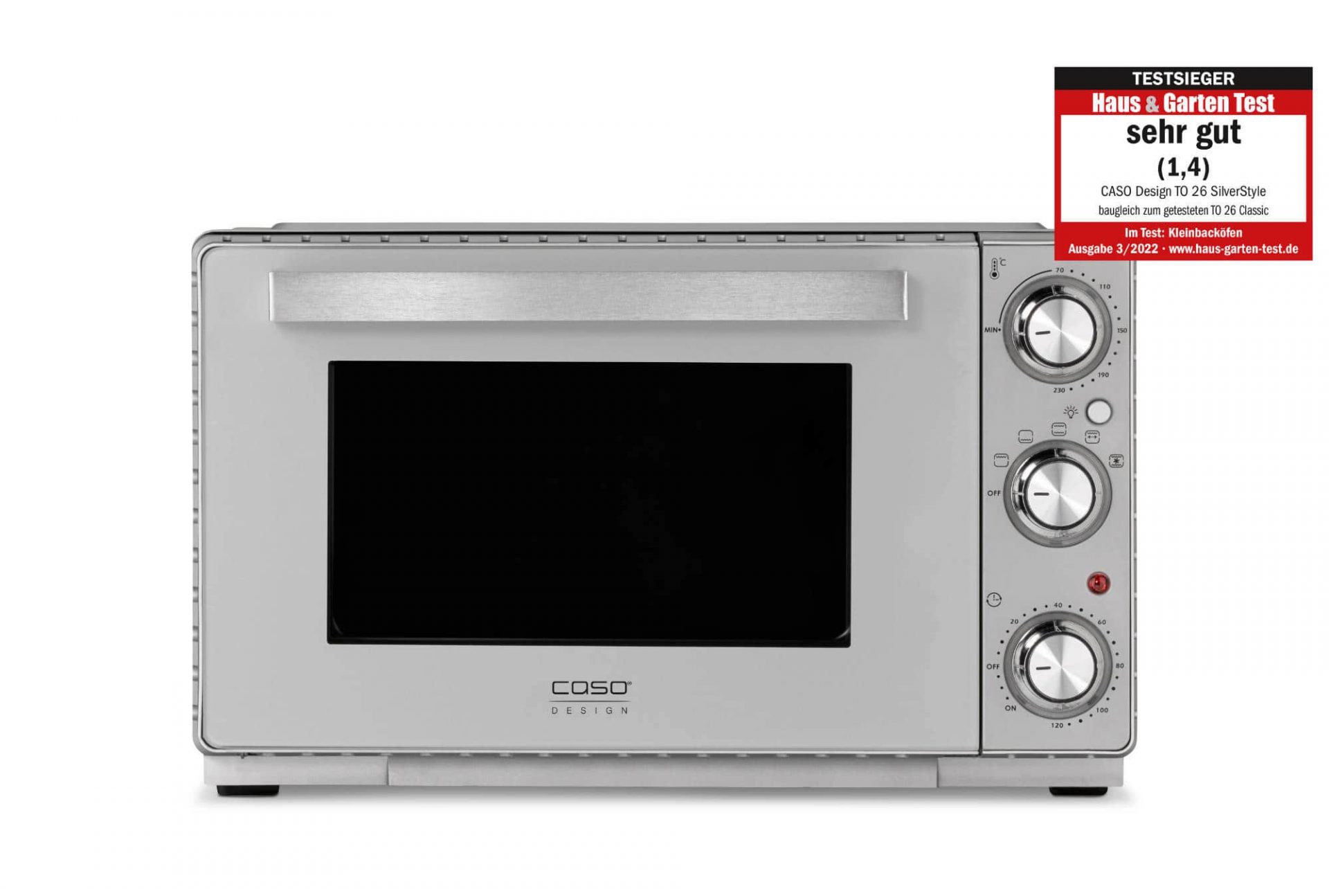 Der Backofen TO 26 SilverStyle von Caso wurde von „Haus & Garten Test“ mit der Note 1,4 zum Testsieger gekürt, der TO 20 erhielt die Note 1,5.