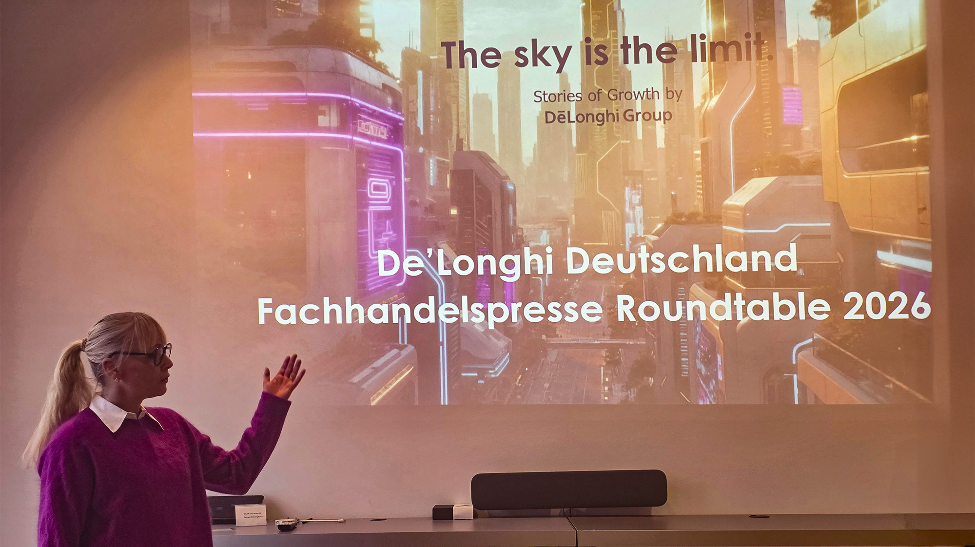 „The sky is the limit“: Susanne Harring, Geschäftsführerin von De’Longhi Deutschland, präsentiert auf dem Fachhandelspresse-Roundtable 2026 die beeindruckende Wachstumsstory der Markenfamilie De’Longhi, Braun, Kenwood und nutribullet.