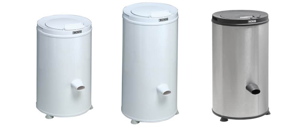Früher allgegenwärtig, heute eher eine Besonderheit: die Wäscheschleuder. In ihrer neuen Version von Thomas haben die Centri Wäscheschleudern eine Breite von 38 Zentimetern und verbrauchen nur 0,03 kWh pro Schleudergang, bei bis zu 2.800 Umdrehungen pro Minute.