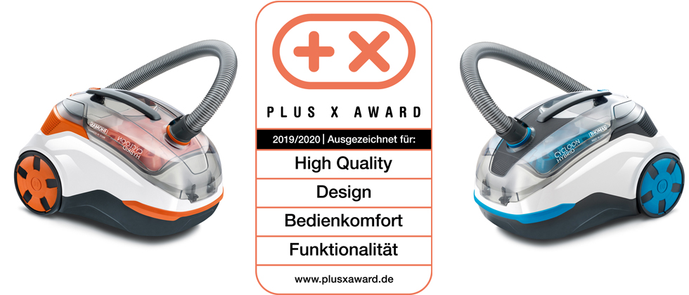 Kompromisslose Qualität, frisches Design, höchste Bedienungsfreundlichkeit und Funktionalität – dafür stehen die Staubsauger von Thomas. Dass diese Schlagworte nicht nur Werbeversprechen sind, dokumentiert die Auszeichnung der Thomas Cycloon Hybrid Modelle mit dem Plus X Award in den Kategorien High Quality, Design, Bedienkomfort und Funktionalität.