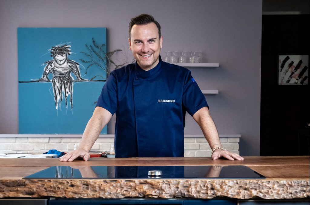 Alle guten Dinge sind drei: Tim Raue wird auch 2023 im dritten Jahr in Folge als Markenbotschafter und Testimonial für Samsung Hausgeräte tätig sein.