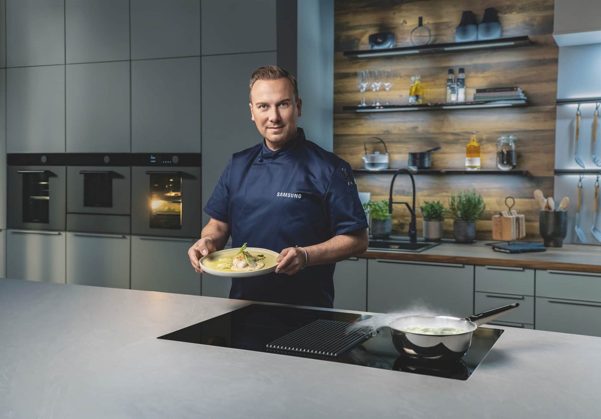 Die Verbindung von Tim Raue und Samsung Hausgeräte ist passend wie authentisch zugleich. Nicht nur weil er als Sternekoch für Leidenschaft in der Küche steht, sondern weil er auch privat ein Fan des Samsung Hausgeräte-Portfolios ist. Nicht zuletzt ist aus diesem Grund sein Zuhause mit einem Dual Cook Flex Einbaubackofen und dem Induktionskochfeld mit Virtual Flame ausgestattet.