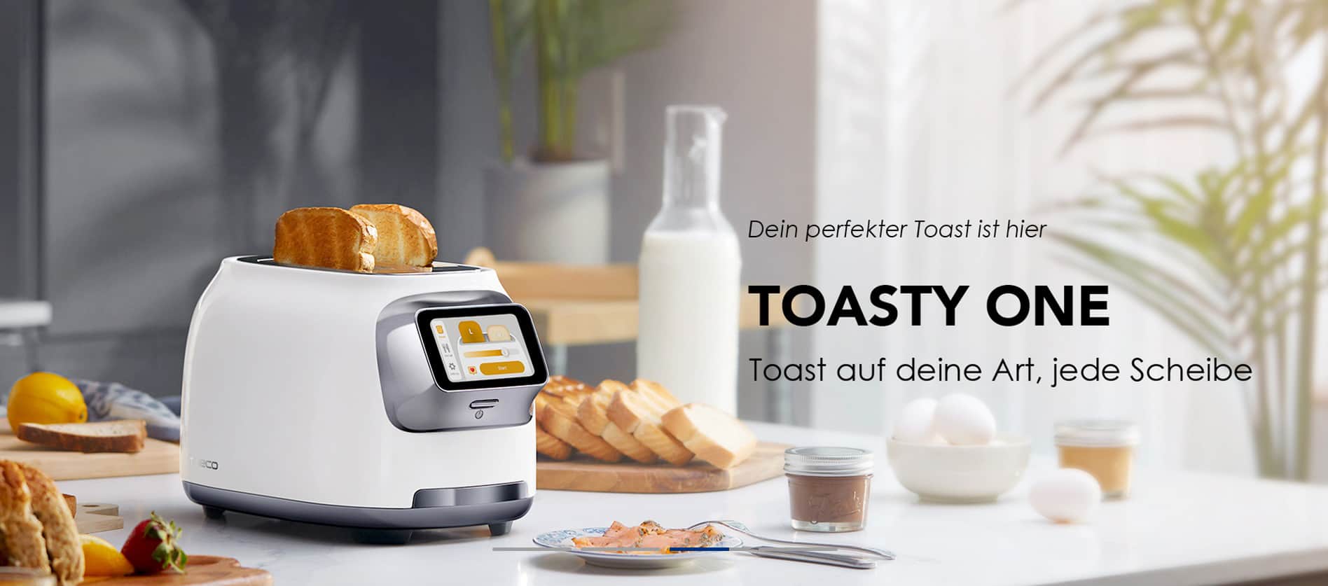 Der Toasty One kann mit patentiertem „Intelliheat“-Algorithmus Toastbrot entsprechend den Vorlieben der Benutzer zubereiten. Die Anwender haben die Möglichkeit über ein Display und einen intuitiven Schieberegler den von ihnen gewünschten Röstungsgrad einzustellen, der dann von im Toaster eingebauten Infrarotsensoren erkannt wird. Das Gerät erkennt den Zustand des Toasts und passt die Hitzeleistung in Echtzeit an die Brotscheibe an.
