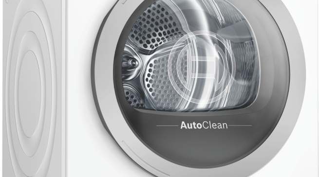HomeProfessional Trockner WTX87E40 von Bosch: So einfach war Trocknen noch nie: Der erste Trockner ohne Türfilter. „AutoClean“ macht regelmäßige Flusenentfernung überflüssig.