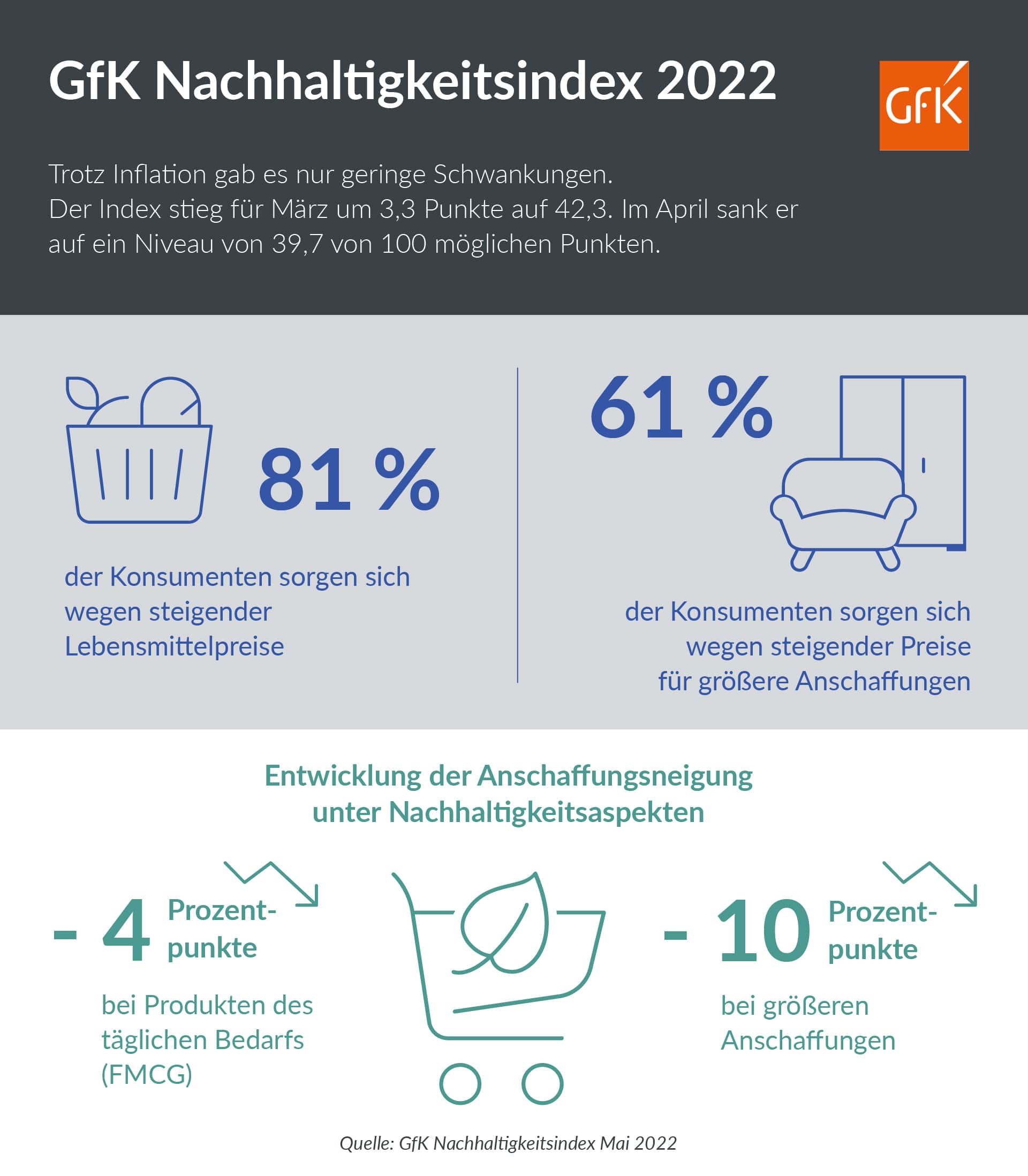 Der GfK Nachhaltigkeitsindex untersucht die Einstellungen der Deutschen zu diesem Thema in einer repräsentativen Studie. Die aktuellen Daten zeigen, dass Nachhaltigkeit trotz großer Veränderungen wie dem Ukraine-Krieg wichtig für Verbraucher bleibt. Konsumenten sind bereit, mehr Geld für umweltfreundliche Produkte auszugeben – trotz Inflation.