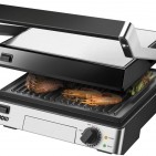 - kombinierte Grillfläche: geriffelt für Fleisch, glatt für Fisch und Gemüse