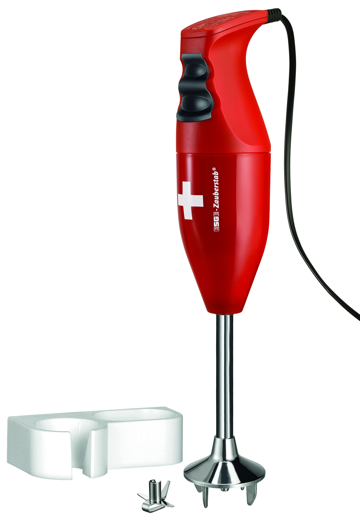 Der Unold ESGE-Zauberstab M 100 D Schweiz fällt auf in seinem kernigen Rot mit dem Schweizer Kreuz. Sein 120 Watt starker langlebiger AC-Motor schafft wahlweise 7.000 und 10.000 Umdrehungen pro Minute. Die hochwertige Technik ist in das klassische ESGE-Zauberstab Gehäuse mit neuem ergonomischen Griffdesign verpackt. Farblich passend in schwarz abgesetzt, die beiden Soft-Touch-Membranschalter, über die die gewünschte Umdrehungsgeschwindigkeit ausgewählt wird. Das Aufstecken des Multimessers gelingt mit Hilfe der Aufsteck-Zentrierung immer. So werden Mixen, Pürieren, Schäumen, Zerkleinern, Crushen oder Passieren zum Kinderspiel. Mit dem praktischen Wandhalter lässt sich der Unold ESGE-Zauberstab M 100 an jeder Küchenwand sicher und griffbereit befestigen und ist so ein echter Blickfang im angesagten Alpine Style.