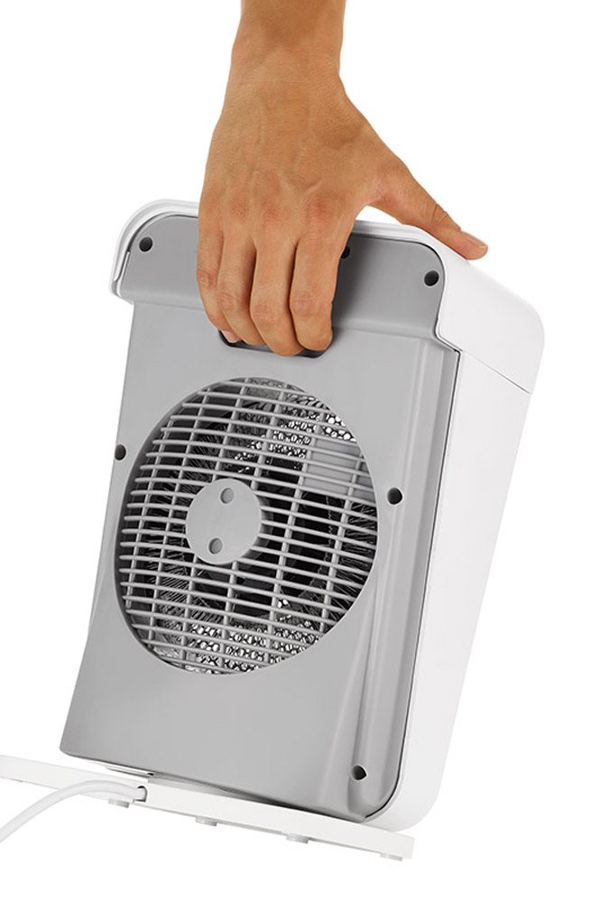 Ausgestattet mit einem praktischen Tragegriff, ist der Heizlüfter bequem zu transportieren. Zur weiteren Ausstattung gehört ein 2-Stunden-Timer.